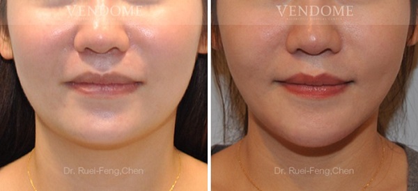 療程效果因人而異,上圖之案例是在接受正顎手術的同時,將下顎骨角做適當的修飾,把比較大的下顎骨角移除,透過正顎手術校正戽斗,並以削骨手術打造更柔順的下顎線條。
