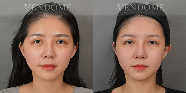 療程效果因人而異,上圖之案例是在接受正顎手術的同時,將下顎骨角做適當的修飾,把比較大的下顎骨角移除,同時改善左右臉不對稱問題。
