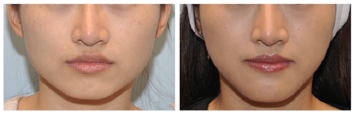 療程效果因人而異,上圖之案例同時將下顎骨角修順+下巴延長,臉型從原先方短寬變得小而精緻,並透過下巴手術擁有更理想的臉部比例。