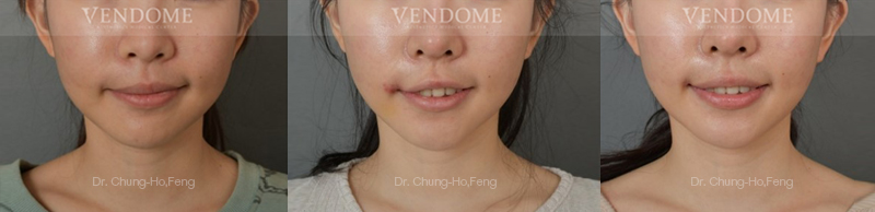 (療程效果因人而異,28歲的M小姐因為第三級咬合不正 (戽斗),臉型不對稱來診所做了正顎手術,上圖是M小姐在做完正顎手術術後2年追蹤)