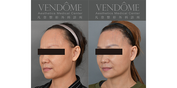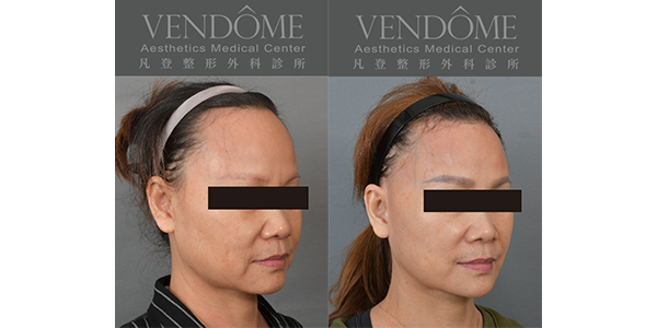 療程效果因人而異,28歲的Y小姐,在做完削骨手術後的第三年,始終覺得臉頰肉垂垂的,嘴角還不對稱,上圖是Y小姐在做完臉部年輕化拉皮手術後6個月、術後10個月追蹤