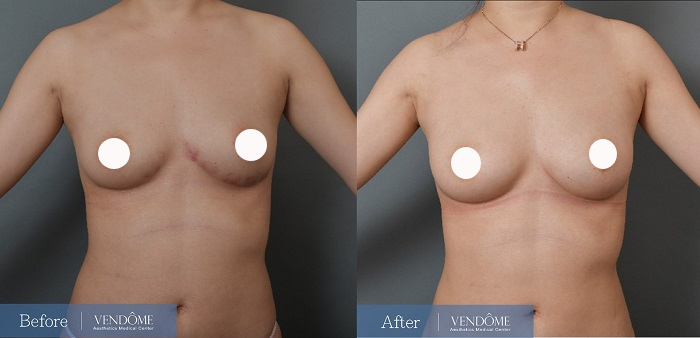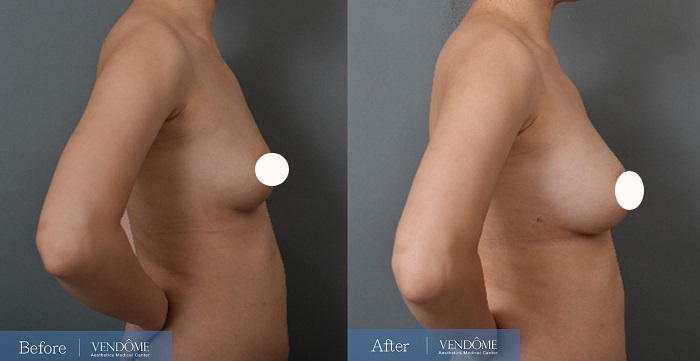療程效果因人而異,上圖為C罩杯產後女性在做完自體脂肪隆乳之後​手術後六個月成效