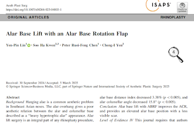 也很高興終於在今年的三月獲得世界美容整形外科學會ISAPS的官方期刊『Aesthetic Plastic Surgery Journal』接受並發表這篇論文