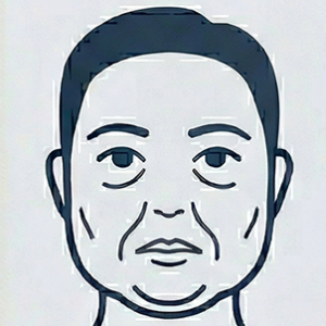 臉部即便在無表情時也顯得異常飽滿、發亮。做表情時肌肉牽動困難,笑容顯得僵硬、不自然。